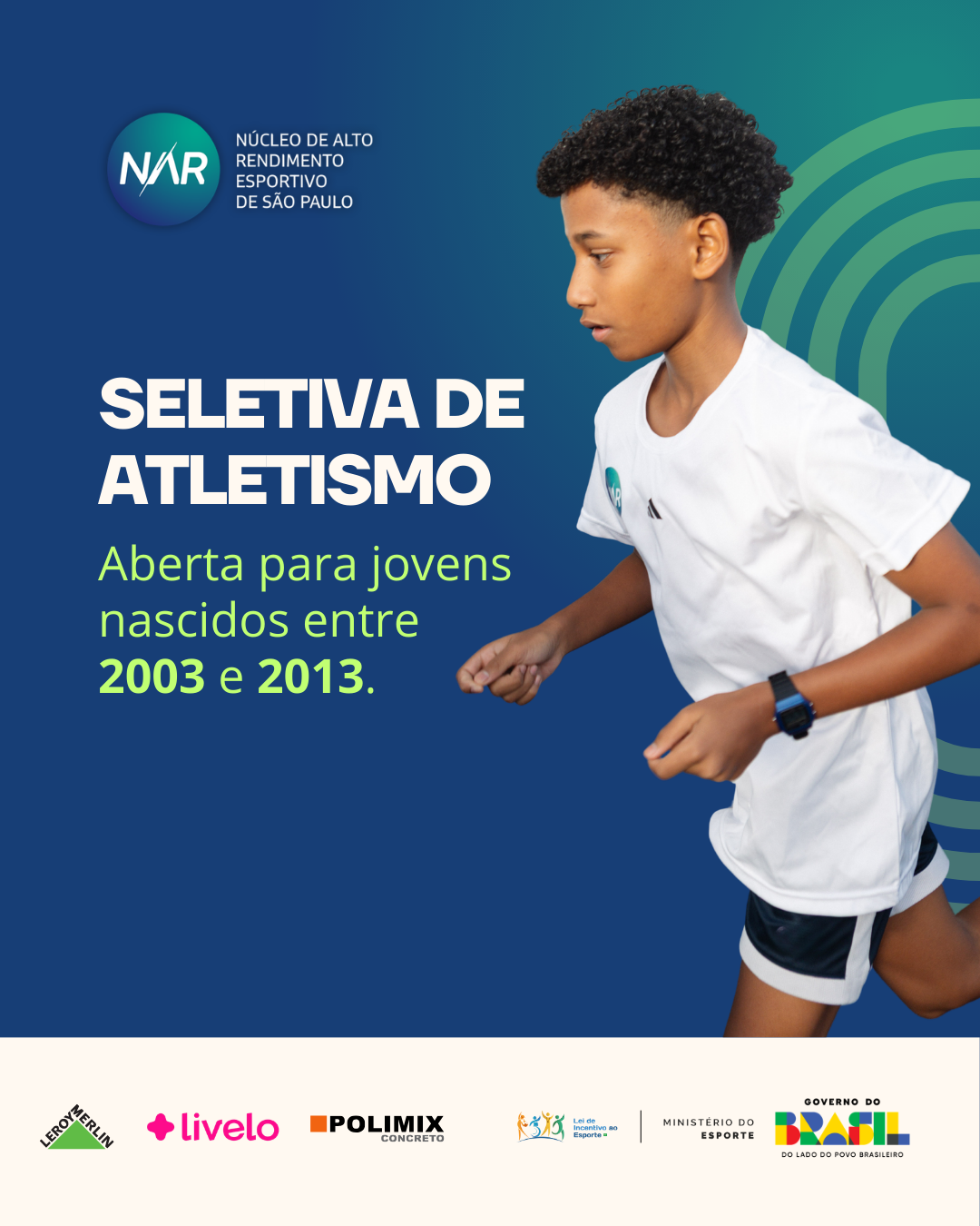 Se você nasceu entre 2003 e 2013, esta é a sua oportunidade de mostrar seu potencial, desafiar seus limites e dar o primeiro passo rumo ao alto rendimento. Aqui, cada atleta é acompanhado, orientado e preparado para evoluir dentro e fora do esporte.